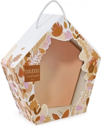 Oryginalne opakowanie w kształcie ptasiej budki z kwiatowym motywem czyni z zabawki idealny prezent na narodziny dziecka.