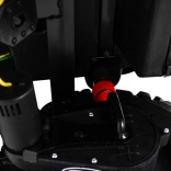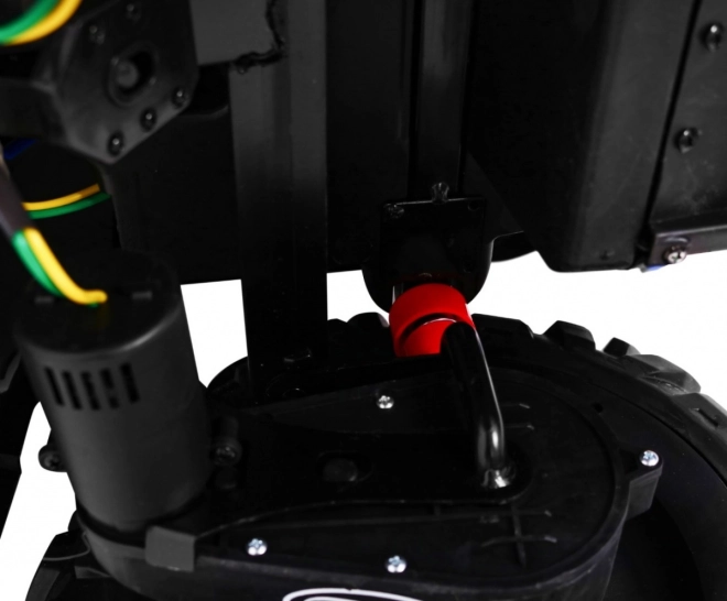 Komfort zwiększają duże, bezobsługowe koła EVA (35 × 15 cm), poczwórne zawieszenie oraz miękkie siedzisko z czarnej, wentylowanej ekoskóry (31 × 18 cm). O bezpieczeństwo i widoczność dbają przednie i tylne światła LED z własnym włącznikiem oraz płynny start bez szarpnięć.