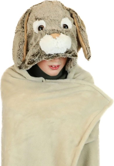 Podaruj dzieciom radość i ciepło w jednym. Ciepły koc Cozy Noxxiez z super miękkiego polaru doskonale sprawdzi się jako okrycie i zabawny rekwizyt do zabawy. Kaptur z motywem królika oraz dwie narożne kieszenie w kształcie łapek ogrzeją dłonie i pobudzą dziecięcą wyobraźnię.