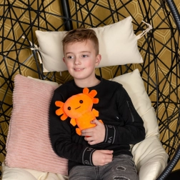 Ten pomarańczowy „wodny smoczek” przedstawia aksolotla meksykańskiego w przyjaznym designie, który dzieci od razu pokochają. Wykonany z przyjemnego i trwałego materiału, świetnie nadaje się do przytulania oraz jako kojący towarzysz do łóżeczka. Dzięki certyfikacji od urodzenia jest bezpieczny także dla najmłodszych.