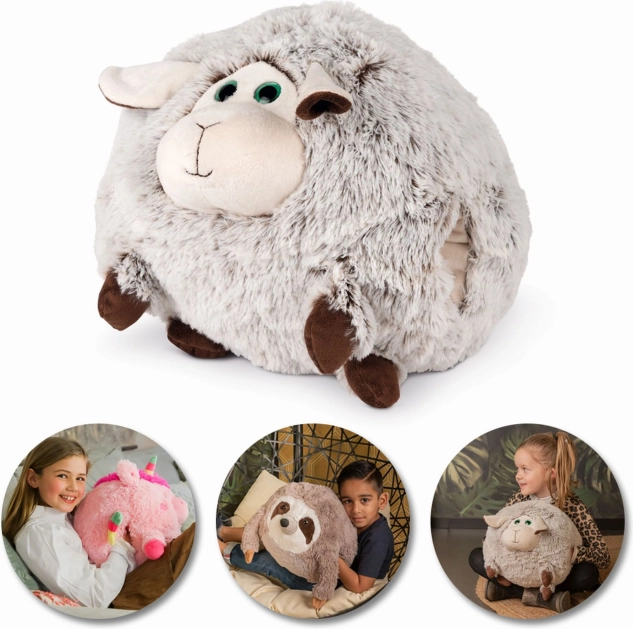 Urocza owieczka COZY NOXXIEZ to mięciutka pluszowa poduszka 3 w 1: służy jako poduszka, mufka do ogrzewania rąk oraz przytulanka. Dzięki dwóm bocznym otworom szybko ogrzejesz dłonie, a dzieci pokochają ją także jako tajną skrytkę. Idealna na podróże, do samochodu i jako dekoracja pokoju dziecięcego.