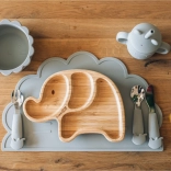 Stylowy dziecięcy talerzyk w kształcie słonia wykonany w 100% z bambusa z odłączaną przyssawką zapewniającą stabilne mocowanie do stołu. Posiada 3 praktyczne przegródki do oddzielania pokarmów, jest bez BPA, PVC, ftalanów i melaminy oraz oferuje łatwe czyszczenie i wytrzymałość do codziennego użytkowania.