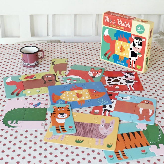 Mix & Match - Wesołe zwierzątka firmy Magellan to idealne pierwsze puzzle dla Twojego dziecka. Proste do łączenia zwierzątka pomagają rozwijać koncentrację i kreatywność. Ta gra, oferująca rozwijanie wyobraźni, jest także świetnym sposobem na zwiększanie sprawności manualnej oraz koordynacji ręka-oko.