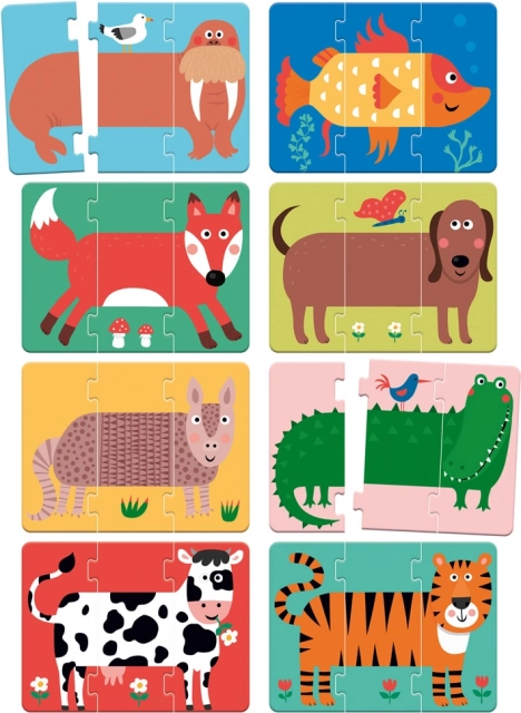 Opakowanie zawiera 24 elementy o wymiarach 8x18 cm, co stanowi optymalny rozmiar dla małych dziecięcych rąk. Puzzle wykonano z wysokiej jakości papieru, który zapewnia bezpieczeństwo i trwałość podczas zabawy. Radosny design oraz możliwość wzajemnego zamieniania elementów oferują nieskończone możliwości zabawy.