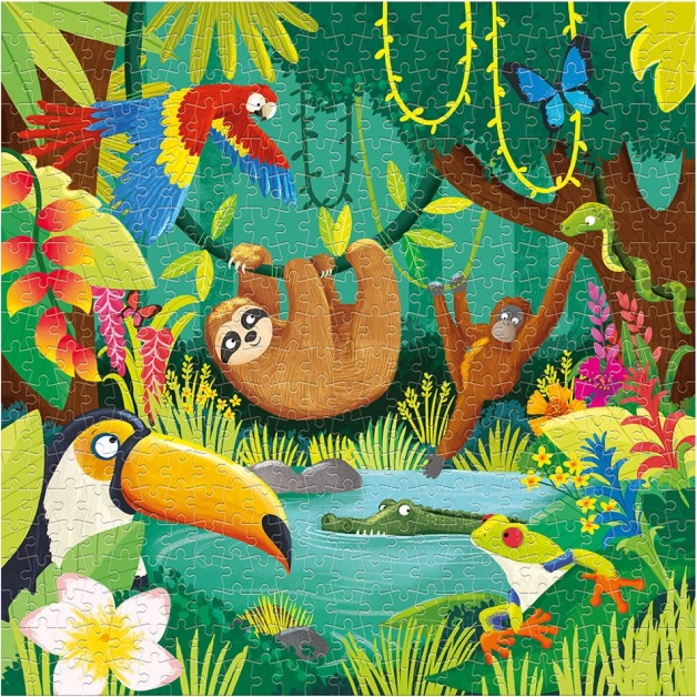 Pod koronami lasu deszczowego kryje się świat pełen tajemnic – a ty możesz odkrywać go element po elemencie. Te wysokiej jakości rodzinne puzzle przedstawiają magicznie ilustrowaną dżunglę z leniwcem, orangutanem, tukaniem i krokodylem. Dzięki wyważonemu poziomowi trudności doskonale nadają się do wspólnego układania przez dzieci i dorosłych.