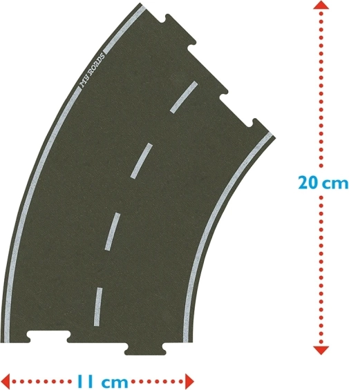 Zbuduj jeszcze zabawniejsze i bardziej urozmaicone trasy dzięki dodatkowemu zestawowi dużych zakrętów do systemu MyRoads. Elementy z naturalnego drewna i kartonu łączą się precyzyjnie i stabilnie, dzięki czemu dzieci mogą bez ograniczeń eksperymentować z kształtami i długością swoich dróg.