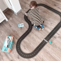 Elementy typu interlocking trzymają się pewnie i zapewniają stabilną nawierzchnię do jazdy. Dzieci samodzielnie zbudują tor i będą cieszyć się płynną jazdą.