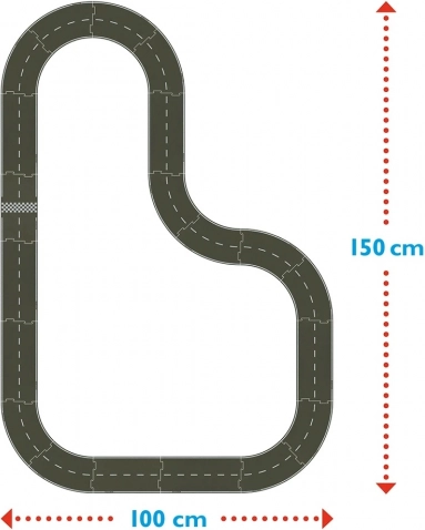 Zbuduj trasę o długości 400 cm z 12 zakrętami, 6 długimi prostymi i 2 prostymi ze startem i metą. Idealna dla małych kierowców i kreatywnych konstruktorów.