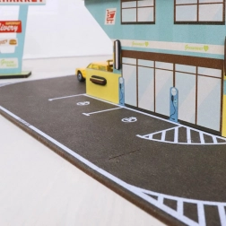 Z tym kreatywnym zestawem zbudujesz supermarket z restauracją burger, parkingiem, wjazdami i wyjazdami oraz przylegającymi drogami. Elementy łatwo się łączą, trzymają pewnie podczas zabawy i zapewnią dzieciom godziny fantazyjnej jazdy autkami. Tekturowe i drewniane komponenty z odpowiedzialnie pozyskiwanych materiałów gwarantują trwałość i przyjazność dla środowiska.