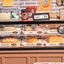 Zintegrowane oświetlenie LED podkreśla witrynę z pieczywem i nadaje modelowi realistyczny, ciepły klimat. Wystarczą 2× baterie AAA.