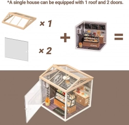 Dla jednej pojedynczej miniatury zalecamy użycie 2× drzwi oraz 1× dachu B. Jeśli masz większy zestaw z kilkoma domkami, wybierz tyle drzwi i dachów, ile jest niechronionych stron Twojej instalacji. Dzięki kompatybilności z modelami DW001 do DW012 rozbudowa i modułowość są zapewnione.
