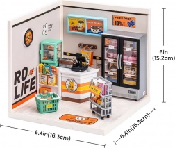 Odkryj urok miniatur z domkiem „Sklep z zapasami” od ROBOTIME. Zestaw przychodzi w stanie rozłożonym, a po złożeniu tworzy przytulną scenę małego sklepiku otwartego „24/7”. Dzięki oświetleniu LED wszystkie drobne detale pięknie się wyróżniają, a model staje się oryginalną dekoracją na półkę lub biurko.