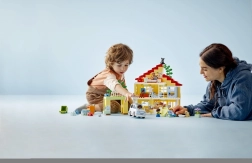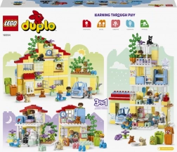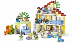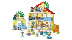 Odkryj rodzinny dom LEGO DUPLO 3 w 1, który wprowadza dzieci w codzienne życie, zabawę i naukę. Trzypiętrowy dom z pięcioma pokojami, 7 figurkami i wieloma akcesoriami wspiera rozwój umiejętności społecznych, wyobraźnię oraz motorykę małą. W zestawie jest świecący klocek w kształcie gwiazdy, ogródek ze zbiorami oraz elektryczny samochodzik z napędem solarnym – idealny dla dzieci od 3 lat.