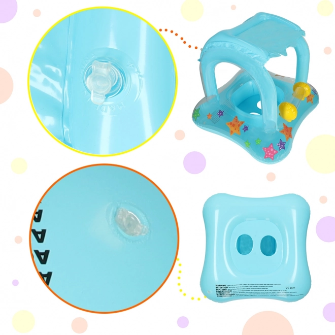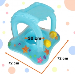 Nadmuchiwane koło do pływania z baldachimem jest idealnym rozwiązaniem do bezpiecznych wodnych zabaw dla najmłodszych. Jego atrakcyjny niebieski kolor i kolorowe gwiazdy ozdobią każdy dzień nad wodą. Baldachim chroni dziecko przed promieniami słonecznymi, podczas gdy może wygodnie bawić się i kołysać na falach.