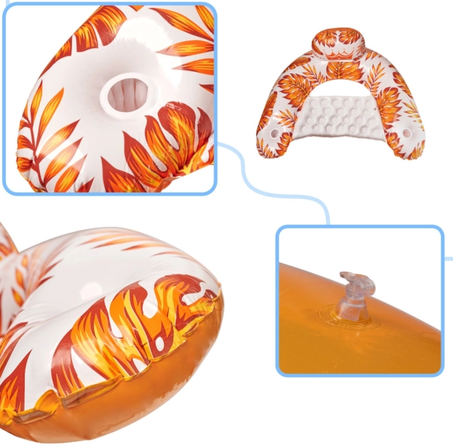 Dmuchane krzesło odświeży Cię nawet w bardzo słoneczne dni, a jego atrakcyjny design z motywem liści palmy i monstery zaskoczy na pierwszy rzut oka. Poza wizualną przyjemnością krzesło jest łatwe w przenoszeniu i poza sezonem nie zajmuje dużo miejsca w przestrzeni magazynowej.