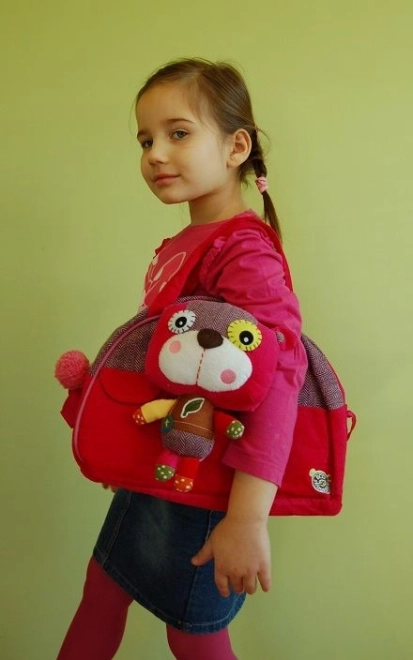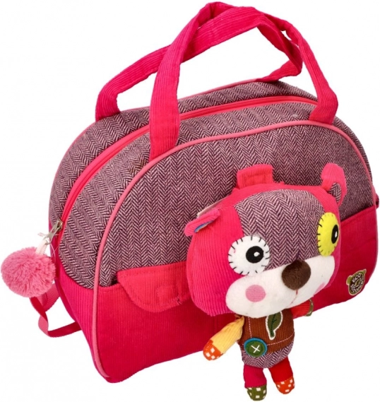 Miś o żywym wyglądzie dodaje torbie zabawny i wyjątkowy styl.