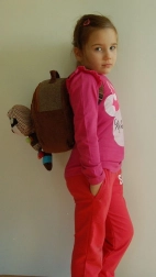 Plecak posiada zabawkę w kształcie szopa, co sprawia, że noszenie plecaka jest zabawne.