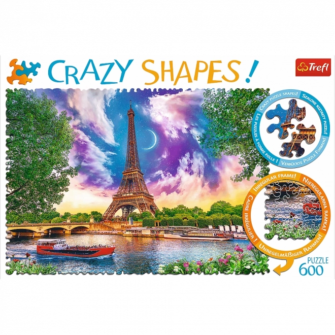 Crazy Shapes to wyjątkowa seria puzzli o nietypowych kształtach. Zawiera 600 elementów, które tworzą obraz o wymiarach 680 x 480 mm, przedstawiający niebo nad Paryżem.