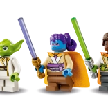 W zestawie znajdują się minifigurki Lys Solay, Kai Brightstar i Mistrz Yoda – każdy z własnym mieczem świetlnym do treningu młodych Jedi.