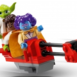 Wewnątrz świątyni znajdziesz strefy zabawy, w tym kuchnię z „niebieskim mlekiem”, łóżka piętrowe z przegubową drabinką, uchwyty na miecze i kryształ. Interaktywny element z lewitującą skałą pobudza wyobraźnię i wprowadza dzieci w „Moc”. Trzy minifigurki – Lys Solay, Kai Brightstar i Mistrz Yoda – dostarczają autentycznych przygód z serialu Star Wars: Young Jedi Adventures.