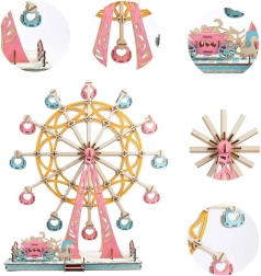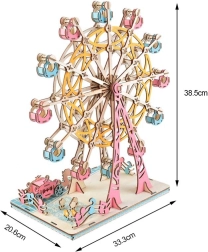 Ciesz się budowaniem wspaniale zaprojektowanego Diabelskiego Młyna z kolorowymi akcentami. Ten drewniany model nie tylko umożliwia ćwiczenie drobnej motoryki, ale także wzmacnia wyobraźnię dzieci powyżej 8 roku życia.