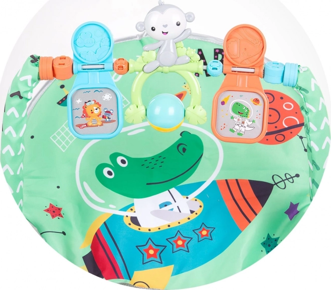 - Interaktywny pałąk z zawieszanymi zabawkami stymulujący wyobraźnię i motorykę.