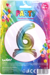 Tęcza na przyjęciu? Z tym nadmuchiwanym balonem w kształcie cyfry 6 z łatwością stworzysz efektowną dekorację do fotokącika oraz centralny element wystroju. Dzięki wysokości 80 cm świetnie wyróżni się w przestrzeni i doskonale pasuje do innych balonów czy girland.