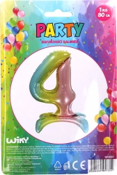Ożyw swoją imprezę tęczowym balonem w kształcie cyfry 4. Duży format jest widoczny z daleka, a gradient kolorów tworzy atrakcyjny efekt, który doskonale wpisuje się w nowoczesne dekoracje na urodziny lub jubileusz.