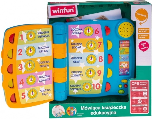 Mówiąca edukacyjna książeczka to świetne narzędzie dla dzieci do odkrywania liter, liczb, słów, kształtów i dźwięków, w tym zegara. Książeczka oferuje interaktywne doświadczenie, w którym dzieci mogą naciskając przyciski wybierać, jakie nowe słowa chcą odkryć.