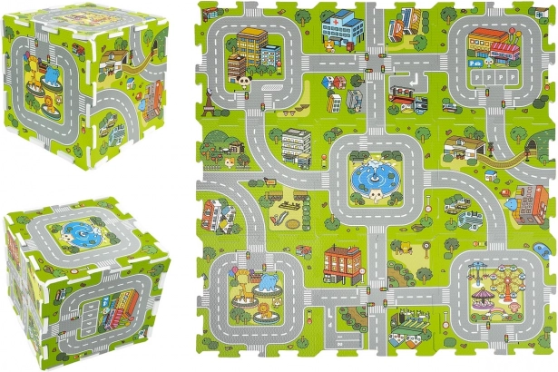 Dzięki motywowi ulic miasta dziecko może jeździć po niej samochodzikami i bawić się w kierowcę. Wykonana jest z miękkiej pianki, przyjemnej w dotyku. Można jej używać także jako podkładu do innych zabaw lub do relaksu. Zabawka uczy: spostrzegawczości, rozpoznawania kolorów i kształtów, budowania figur przestrzennych, kreatywnej zabawy.