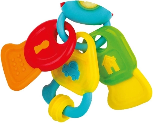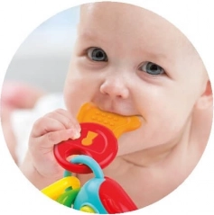 Różnorodne powierzchnie kluczyków delikatnie masują dziąsła i pomagają złagodzić dyskomfort podczas wyrzynania się ząbków.