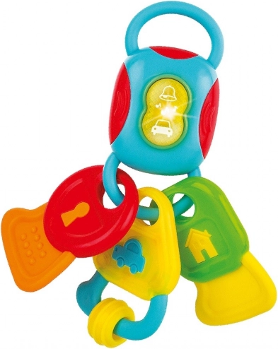 Dzięki różnym powierzchniom kluczyków dzieci ćwiczą chwyt, koordynację oko–ręka i odkrywają nowe bodźce. Funkcyjny przycisk uruchamia dźwięki i wesołe melodie, które wspierają rozwój sensoryczny oraz zapewniają świetną zabawę w domu i w podróży.