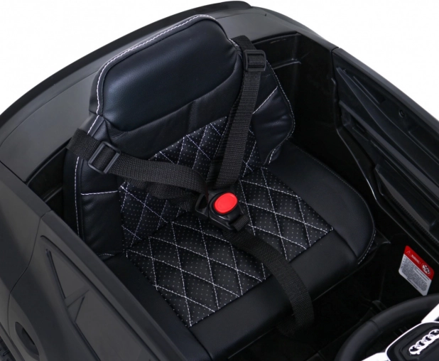 Bogate wyposażenie ucieszy małych kierowców i rodziców: wielofunkcyjny panel audio z MP3, USB, AUX, czytnikiem kart TF, radiem FM i Bluetooth, podświetlany przycisk startu, wskaźnik naładowania oraz otwierane drzwi. Dzięki kołom EVA, tylnemu zawieszeniu i przestronnemu fotelowi z eko skóry jazda jest wygodna nawet podczas dłuższych wycieczek.
