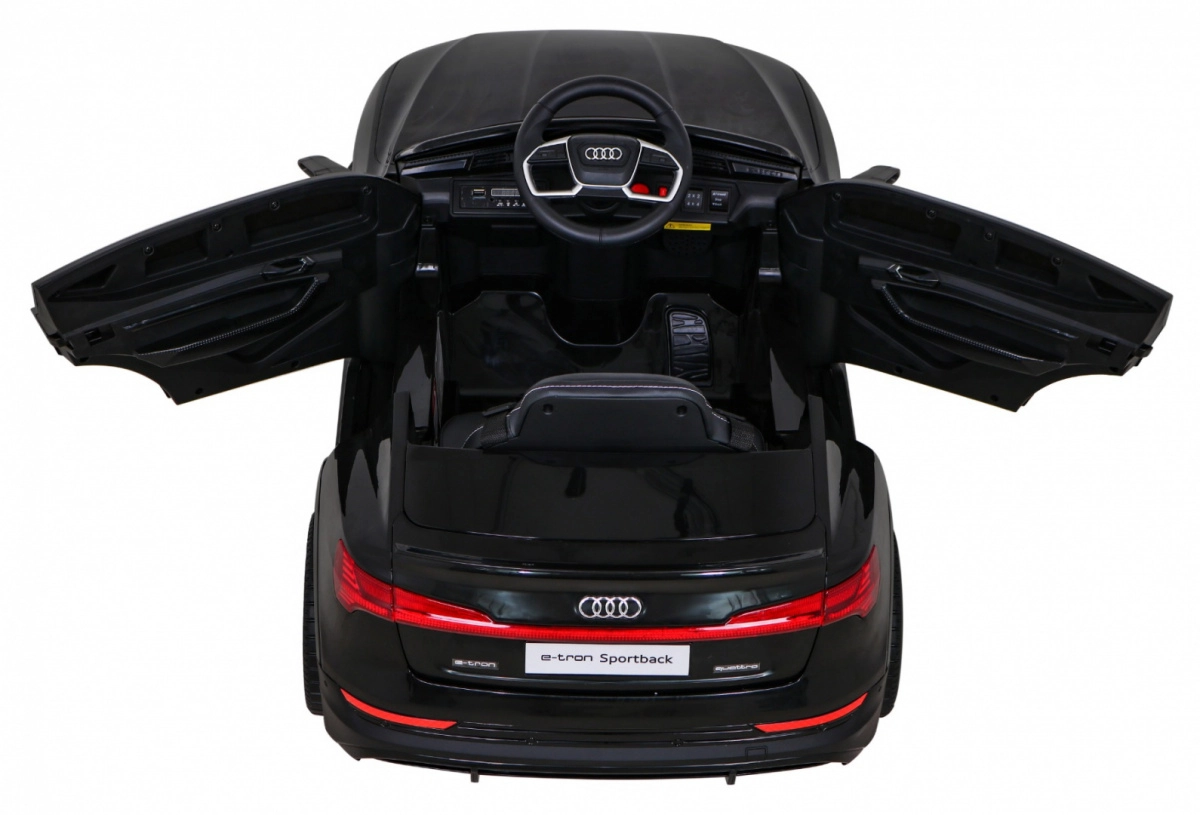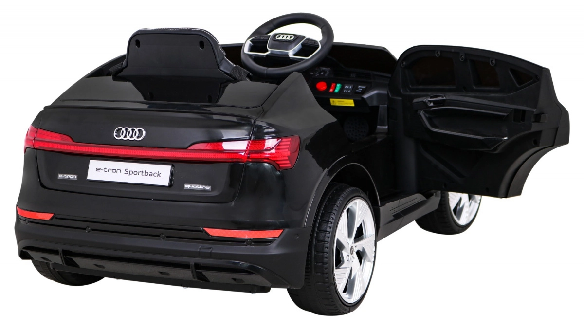 Wierne detale nadwozia, funkcjonalne światła LED oraz emblematy AUDI tworzą wrażenie prawdziwego e-tron Sportbacka w dziecięcym rozmiarze.