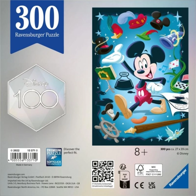 Ciesz się wysokiej jakości puzzlami z jubileuszowym motywem DISNEY 100 lat: MICKEY od marki Ravensburger. Unikalne elementy idealnie do siebie pasują, a 300 elementów zapewnia świetną zabawę przy układaniu dla dzieci i dorosłych, którzy chcą sprawdzić swoje umiejętności puzzlowe.