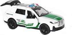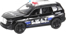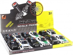 Świetny metalowy model policyjnego auta w skali 1:36 oferuje mnóstwo zabawy: pull back – naciągnij i jedź, realistyczny efekt świetlny koguta oraz wybór 3 wzorów.
