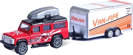 Odkryj stylowy zestaw, w którym solidny pojazd ciągnie szczegółowo wykononą przyczepę. Metalowa konstrukcja gwarantuje trwałość i długą żywotność, otwierane drzwi zachęcają do eksploracji wnętrza, a mechaniczny pull back zapewnia dynamiczną jazdę bez baterii.