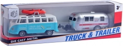 Samochód terenowy z przyczepą kempingową ze światłami i dźwiękami 1:32 – biały
