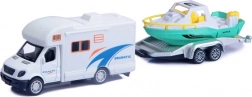 Samochód terenowy z przyczepą kempingową ze światłami i dźwiękami 1:32 – biały