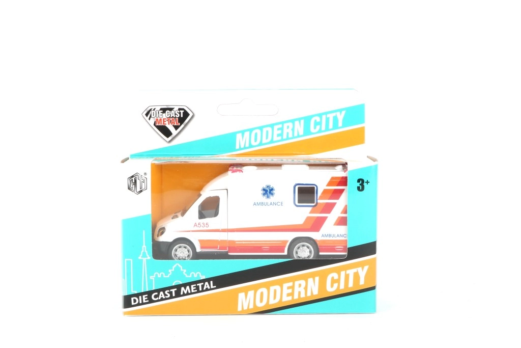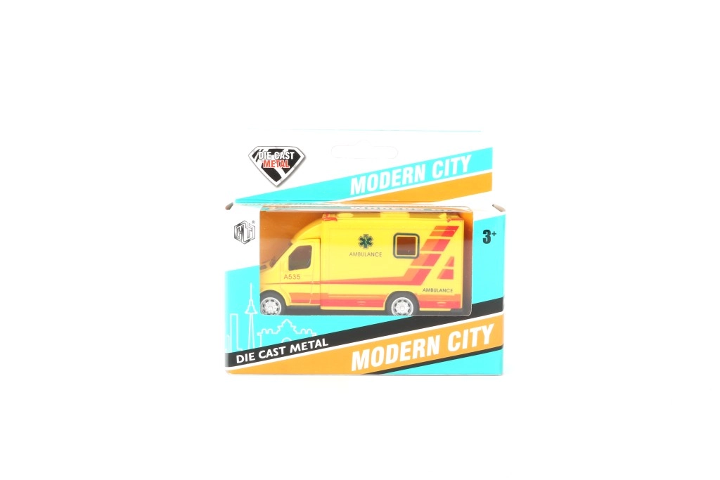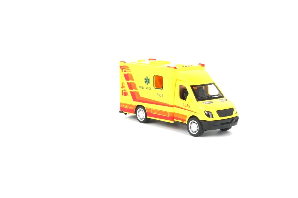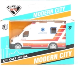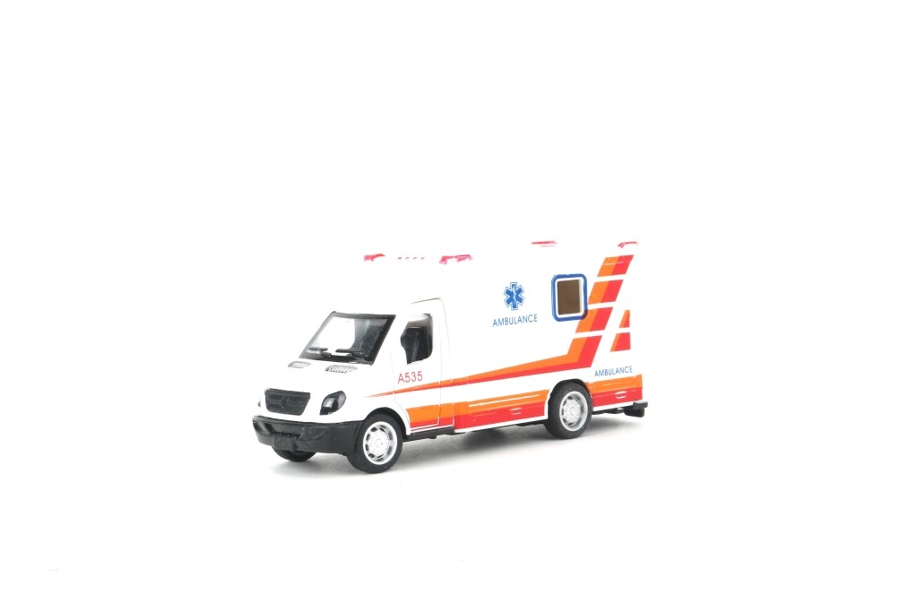 Metalowa karetka Kids Globe Traffic 14 cm ze światłem, dźwiękiem i napędem typu pull-back