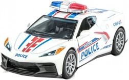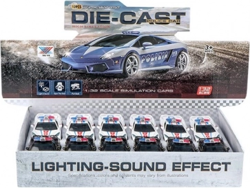 Realistyczny metalowy policyjny samochodzik w skali 1:32 ucieszy małych i dużych fanów pojazdów służbowych. Oferuje otwierane drzwi, funkcję pull back – naciągnij i jedź oraz atrakcyjny efekt świetlny. Dostępne są 2 różne wzory.