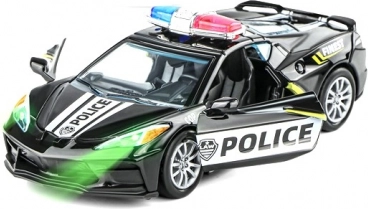 Przeżyj emocjonujące pościgi i wyjazdy służbowe z szczegółowo wykonanym metalowym modelem policyjnego auta. Solidna, metalowa konstrukcja gwarantuje długą trwałość, a otwierane drzwi i efekt świetlny dodają zabawie autentyczności.