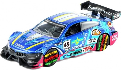 Otwierane drzwi i precyzyjne nadruki nadają modelowi autentyczny wygląd samochodu wyścigowego.