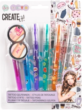 Bądź kreatywny z tym wspaniałym zestawem do tatuażu od CREATE it!. Zestaw zawiera sześć kolorowych pachnących pisaków w odcieniach różowym, niebieskim, fioletowym, zielonym, pomarańczowym i srebrnym, co pozwala tworzyć nieograniczoną liczbę wzorów. Każdy pisak ma dekoracyjny wygląd i pachnącą esencję dla jeszcze przyjemniejszej zabawy.