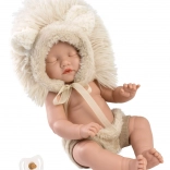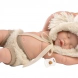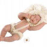 Ta śpiąca realistyczna lalka jest idealna dla dzieci, które chcą poczuć opiekę nad niemowlakiem. Dzięki całowinylowemu ciału lalka może być kąpana, a jej design uchwyca każdy detal dziecięcego ciałka, włącznie z uroczymi fałdkami. Lalka ma ruchome ręce i nogi, dzięki czemu jest ustawialna i może siedzieć. W zestawie znajduje się smoczek, który służy jako stylowy dodatek. Ta lalka była ręcznie wykonana w Hiszpanii i jest pakowana w piękne pudełko prezentowe.