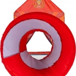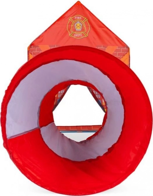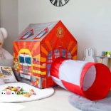 Strażacki domek jest wyposażony w tunel, który można łatwo i szybko zamontować na jednej stronie namiotu. Dzięki temu rozszerzeniu zabawa jest jeszcze bardziej urozmaicona i wzbogacająca.