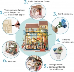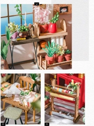 Stwórz własną malowniczą kwiaciarnię z dołączoną oranżerią oraz wieloma roślinami, półkami i wycinanymi dodatkami. Zestaw zawiera wstępnie wycięte elementy ze sklejki, elementy papierowe i tekstylne oraz zestaw narzędzi, dzięki którym powstanie realistyczny model z napisem „Flower Shop” i przezroczystą szklaną częścią. Po złożeniu posłuży jako stylowa dekoracja wnętrza.