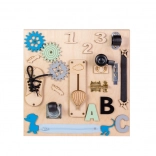 Odkryj kreatywny sposób nauki z tą drewnianą tablicą manipulacyjną o wymiarach 30 × 30 cm. Wspiera motorykę małą, koordynację ręka–oko, myślenie logiczne oraz koncentrację. Dzieci bezpiecznie poznają codzienne przedmioty, takie jak suwak (zamek), dzwonek czy elementy wtykowe, i spędzą długie godziny na mądrej zabawie.