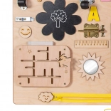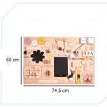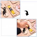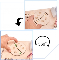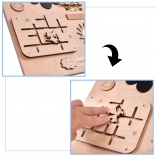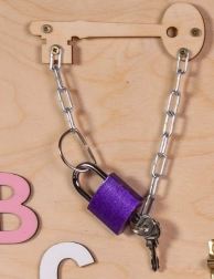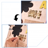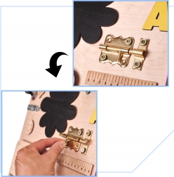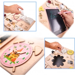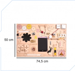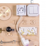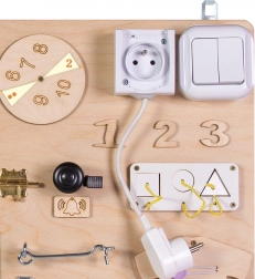 Włącznik światła, gniazdo z wtyczką, zamki i zasuwki uczą dzieci związku przyczynowo-skutkowego oraz praktycznych umiejętności w bezpiecznej formie.