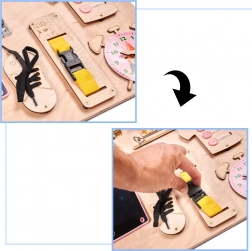 But do sznurowania, guziki i klamra wspierają cierpliwość, koordynację oraz samoobsługę – idealne przygotowanie do przedszkola i szkoły.
